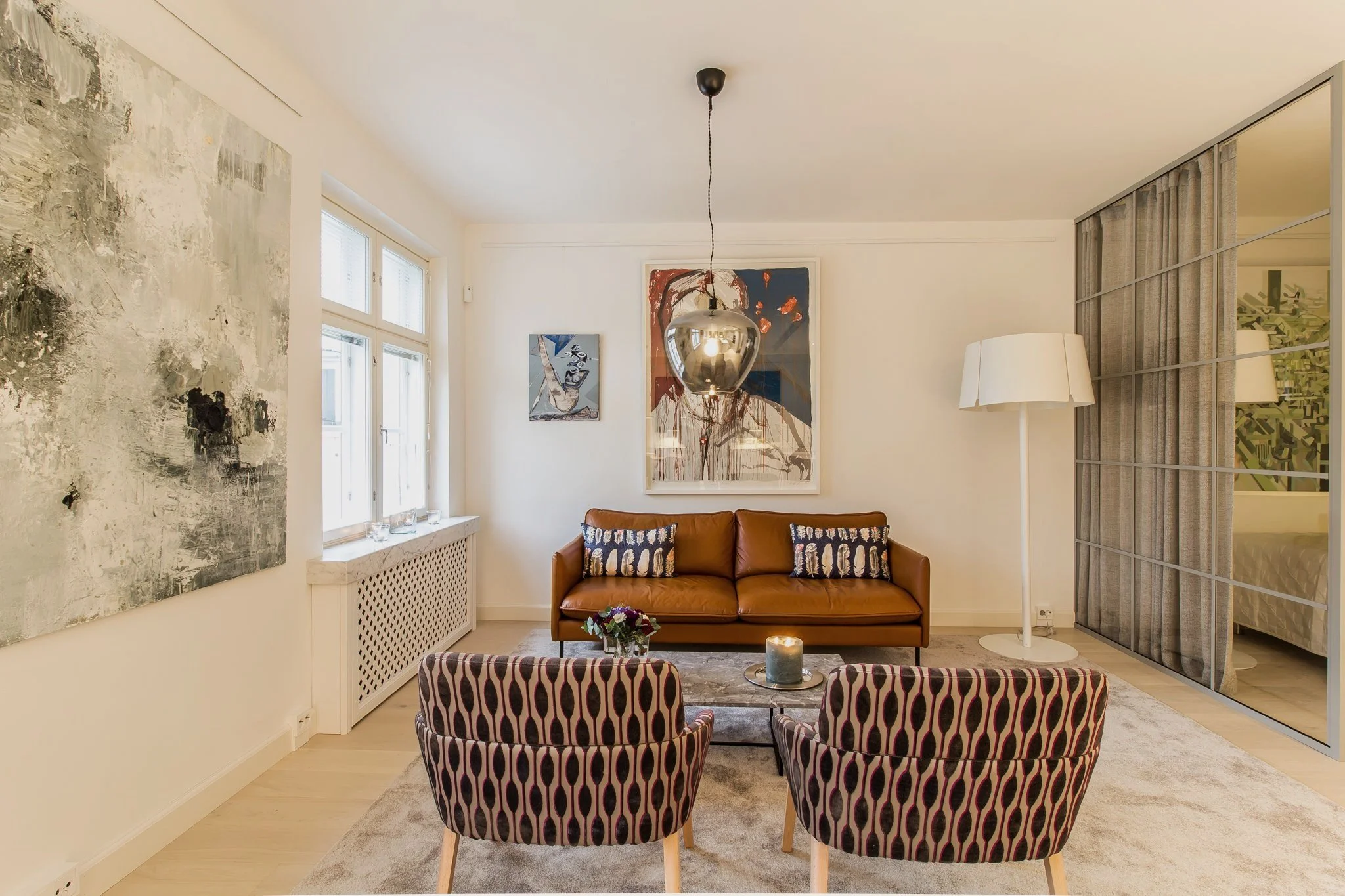 Keskustan vanha asunto uudistettiin kokonaisvaltaisesti saneerauksella ja sisustussuunnittelulla. Vanhat pinnat ja rakenteet purettiin, tehtiin lisää märkätiloja ja Käytettiin moderneja materiaaleja. Tiloja avarrettiin ja luotiin vaaleilla ajattomilla sävyillä arvokas, toimiva koti jossa moderni tyyli ja taide ovat keskiössä.