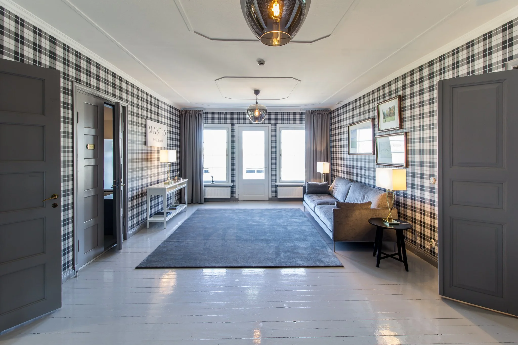 Kartanon uudistuksessa kunnioitettiin arvokasta vanhaa, yhdistäen siihen raikasta ilmettä. Historiallinen miljöö säilytti perinteiset yksityiskohdat, mutta kalusteissa ja väreissä panostettiin moderniin estetiikkaan. Uudet valaistusratkaisut tuovat tiloihin lämpöä ja kutsuvuutta. Lopputulos on elegantti ja toimiva, jossa historia ja nykyaika sulautuvat kauniisti yhteen.
