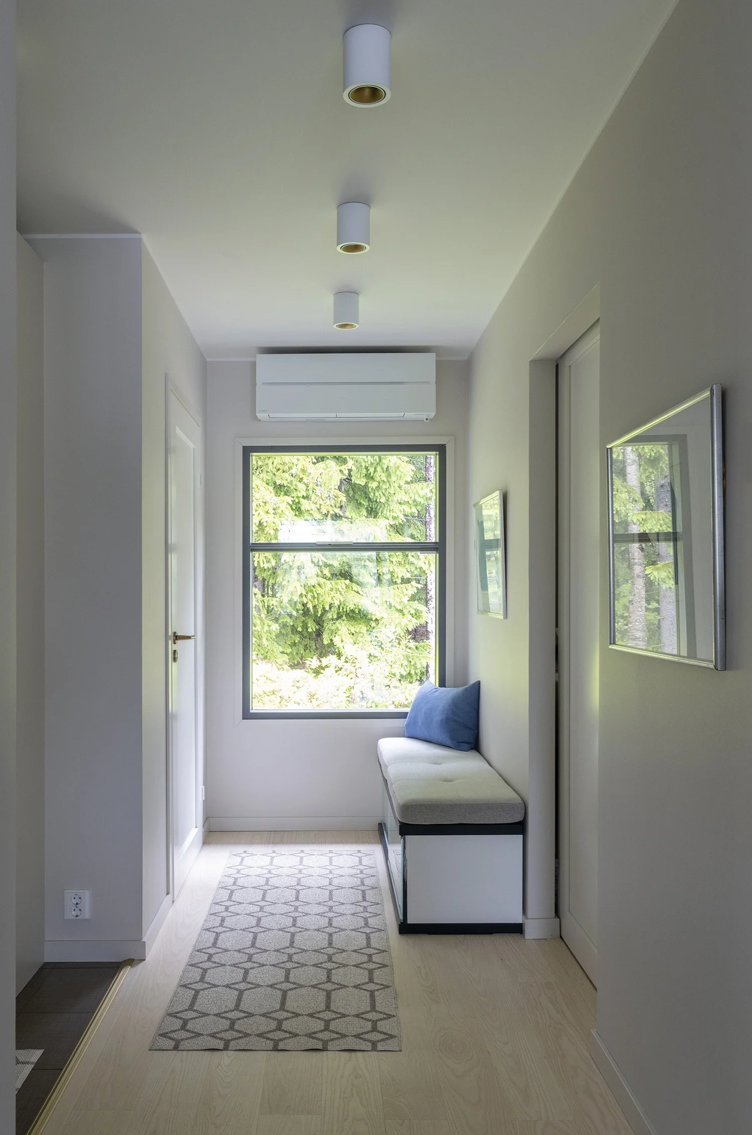 Värimaailma haluttiin pitää vaaleana ja raikkaana. Ripauksella messinkiä ja terrakotan sävyjä saatiin kokonaisuudesta rauhallinen, tyylikäs ja juuri sopivasti omannäköinen.